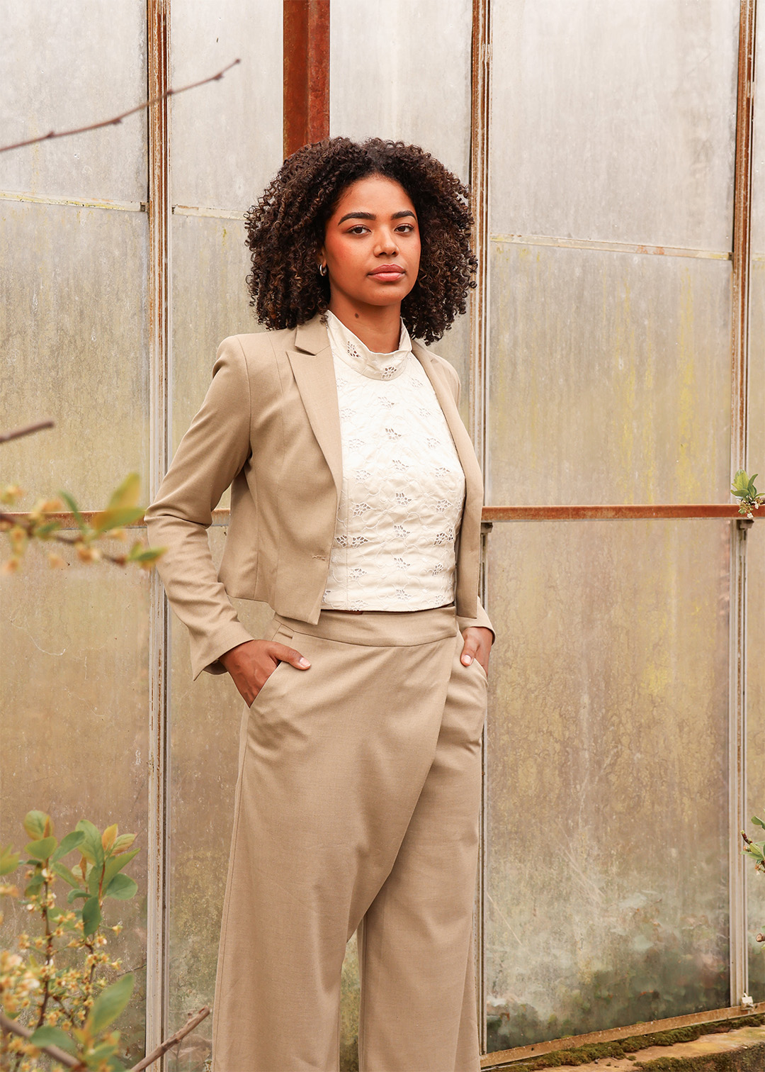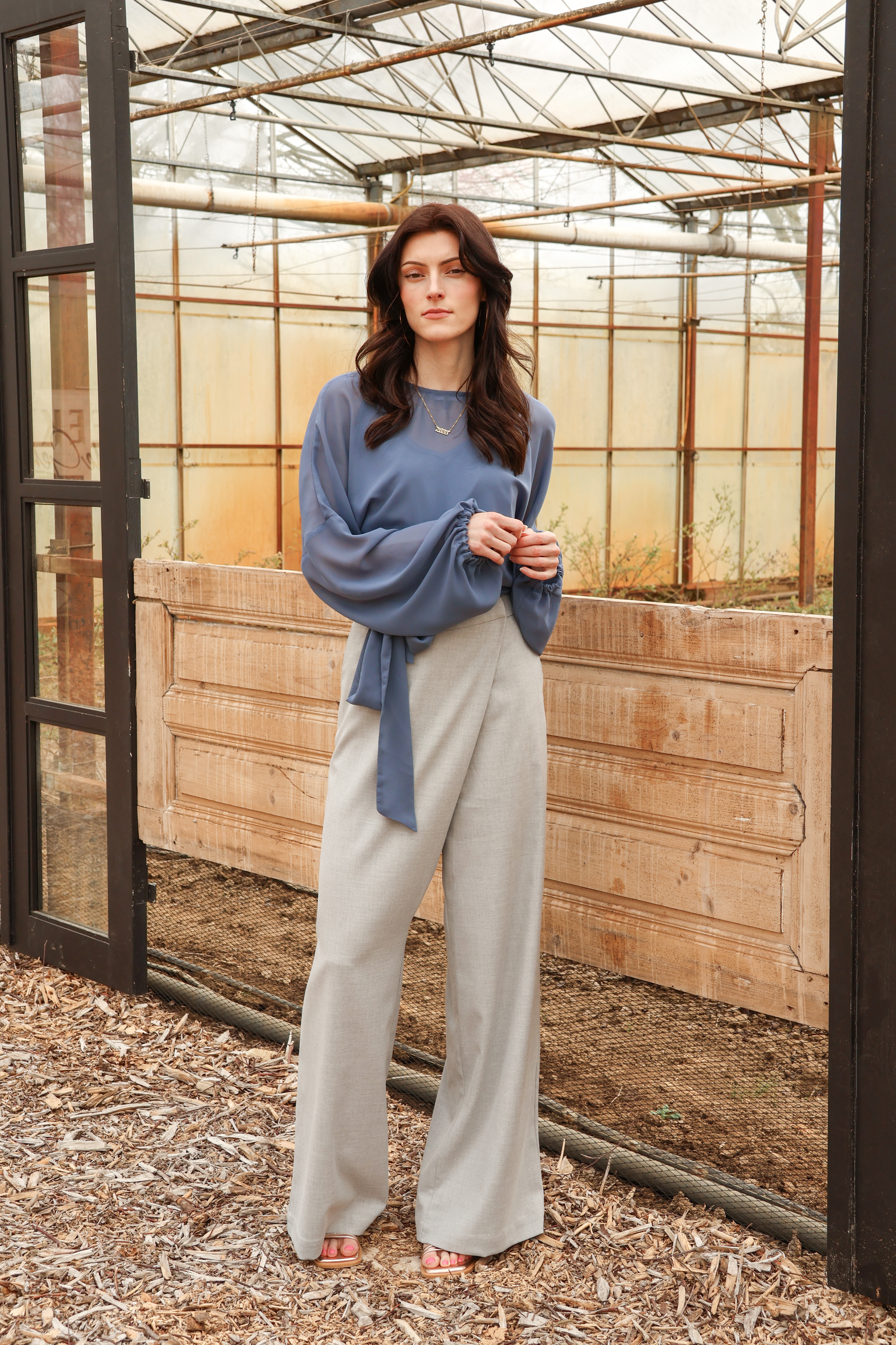 Deze stijlvolle broek combineert comfort met een verfijnd design. De elegante overslag aan de voorzijde geeft een speels en bijzonder detail dat de broek net even anders maakt. De hoge taille sluit mooi aan, terwijl de wijde pijpen zorgen voor een moderne en flatterende look. De zachte stof voelt prettig aan op de huid en draagt comfortabel. Perfect te combineren met zowel een blouse als een casual top, voor een look die zowel gekleed als dagelijks kan.